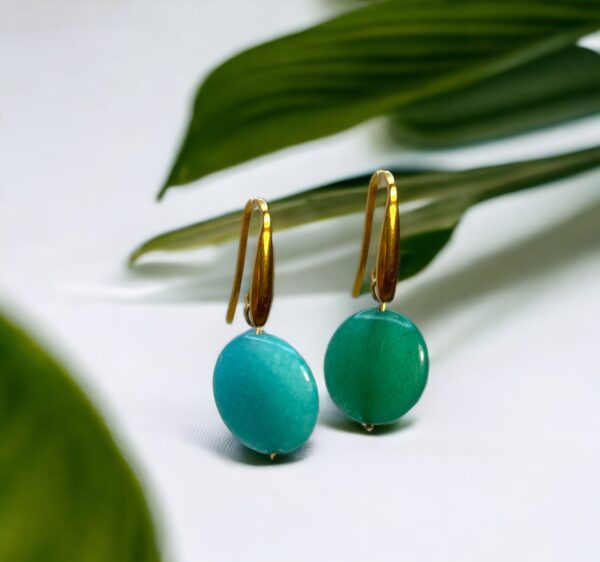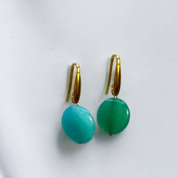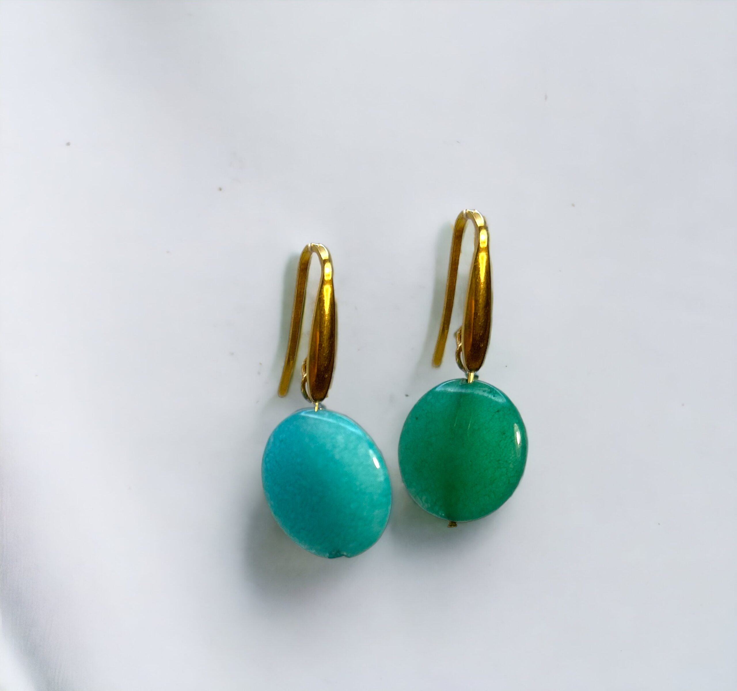 Πράσινα σκουλαρίκια από στρογγυλή πέτρα νεφρίτη, σαν καραμελίτσες.