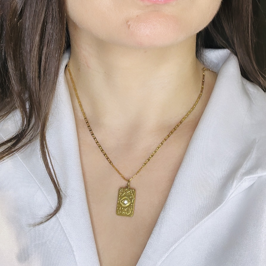 Χρυσό μενταγιόν από ατσάλι με φυλαχτό-μάτι