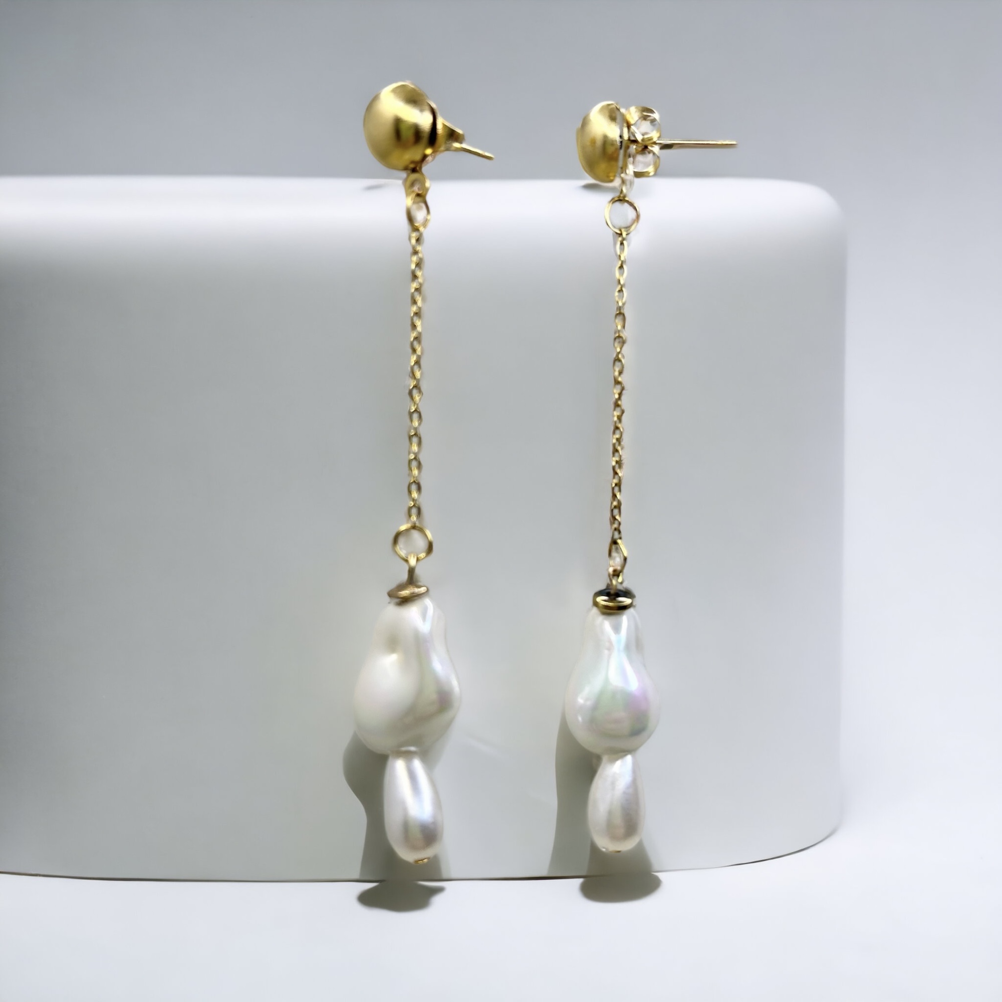 Μακριά ατσάλινα σκουλαρίκια με διπλά μαργαριτάρια καλλιέργειας.