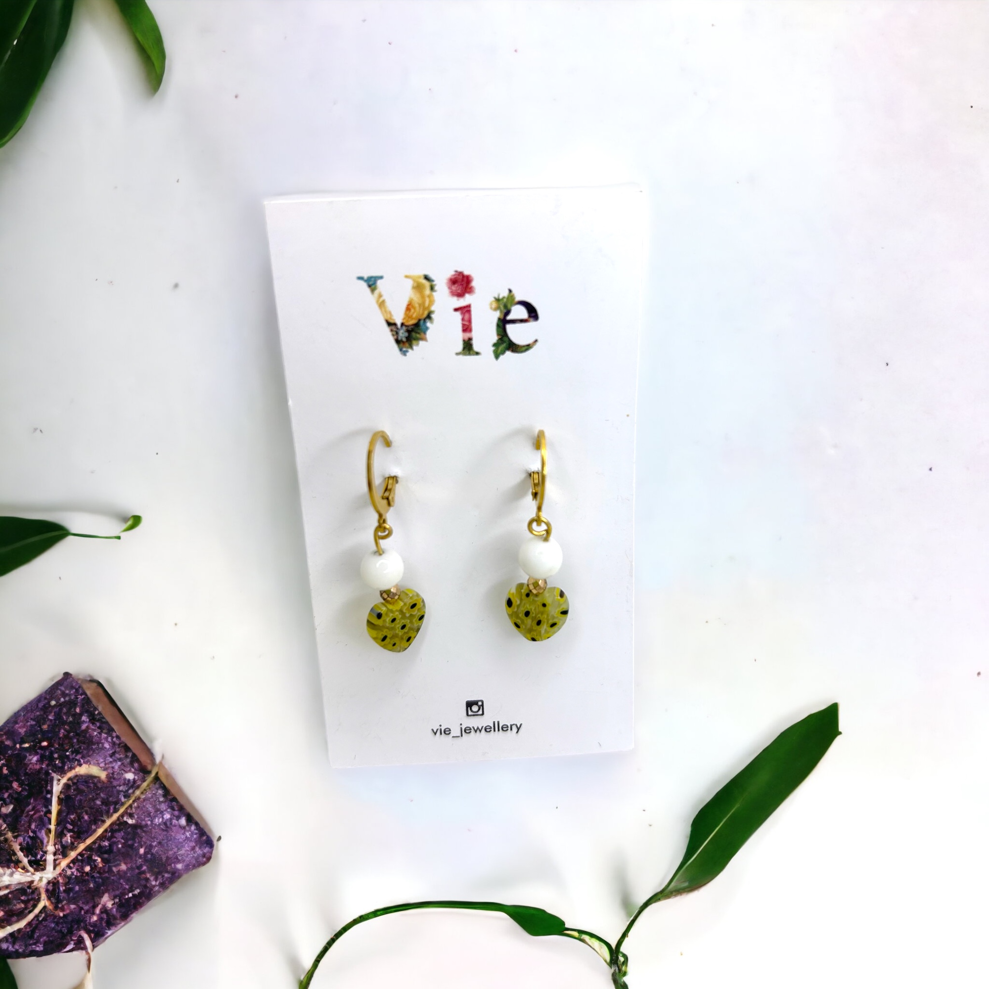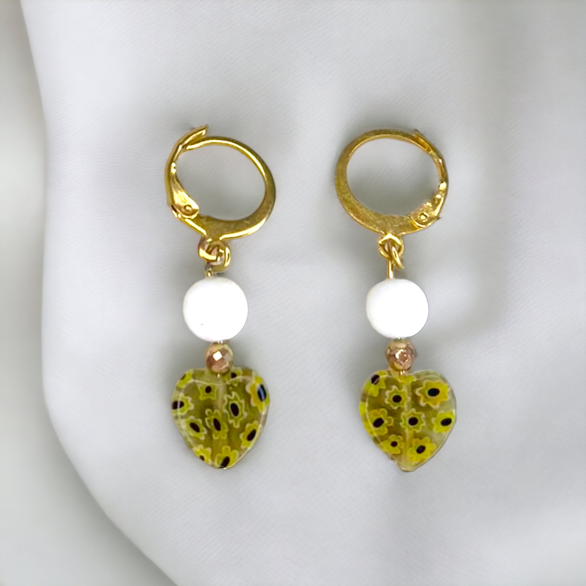 Σκουλαρίκα με πράσινη καρδία από γυαλί μουράνο.